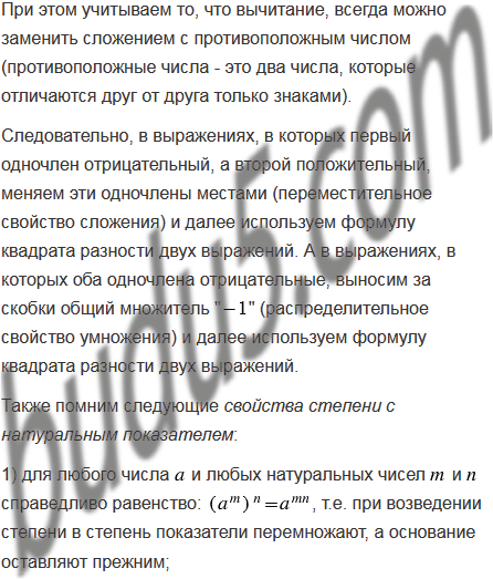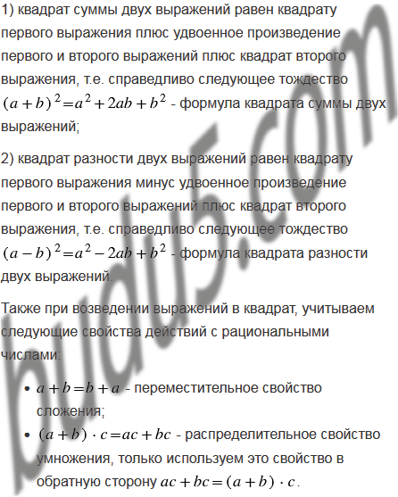 Выполните возведение в квадрат: