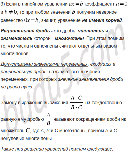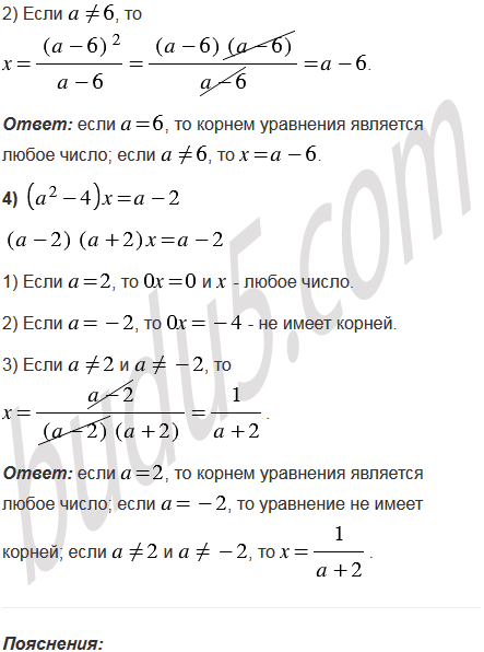 Для каждого значения решите уравнение: