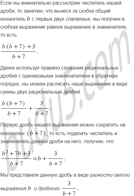 Представьте данную дробь в виде суммы или разности целого и дробного выражений: