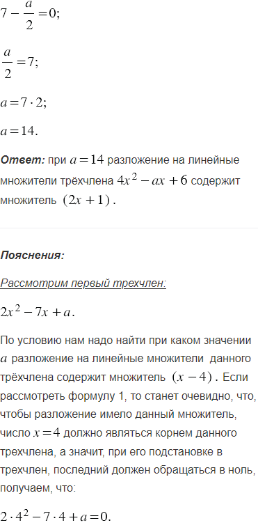При каком значении разложение на линейные множители трехчлена:
