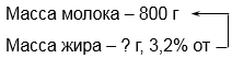 Сколько граммов жира содержит 800 г молока 3,2% жирности?