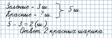 У Тани было 5 шариков, 2 шарика были красными, а остальные зелёные. Сколько зелёных шариков было у Тани?